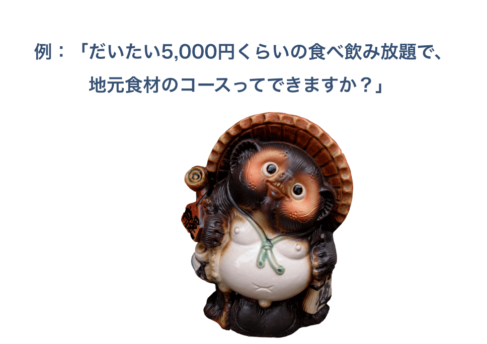 コースの料金やメニューについて、詳しくは注文時にご相談ください。ご予算やご希望にあわせてご用意いたします!